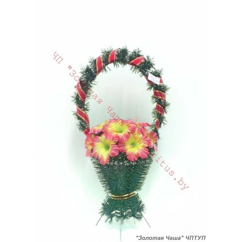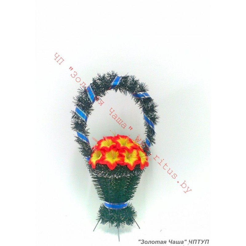 Корзина ритуальная из искусственных цветов. Изготавливается в различной цветовой гамме.