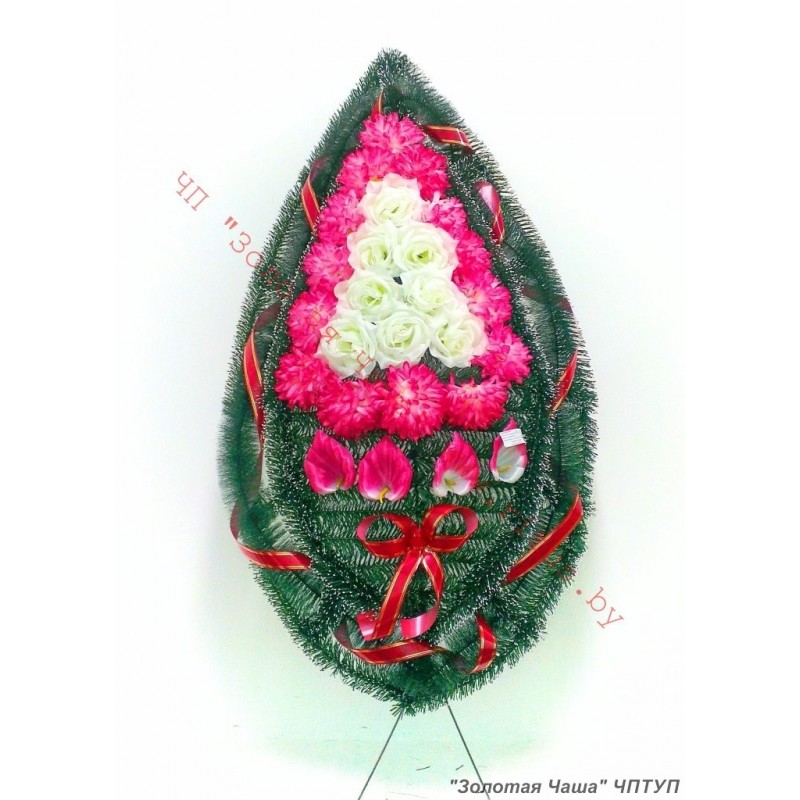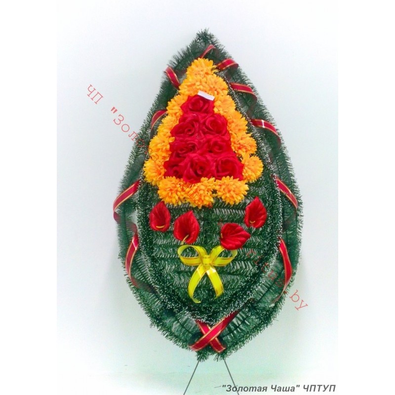 Венок ритуальный из искусственных цветов. Изготавливается в различной цветовой гамме.
