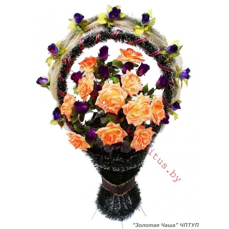Корзина ритуальная из искуственных цветов.
