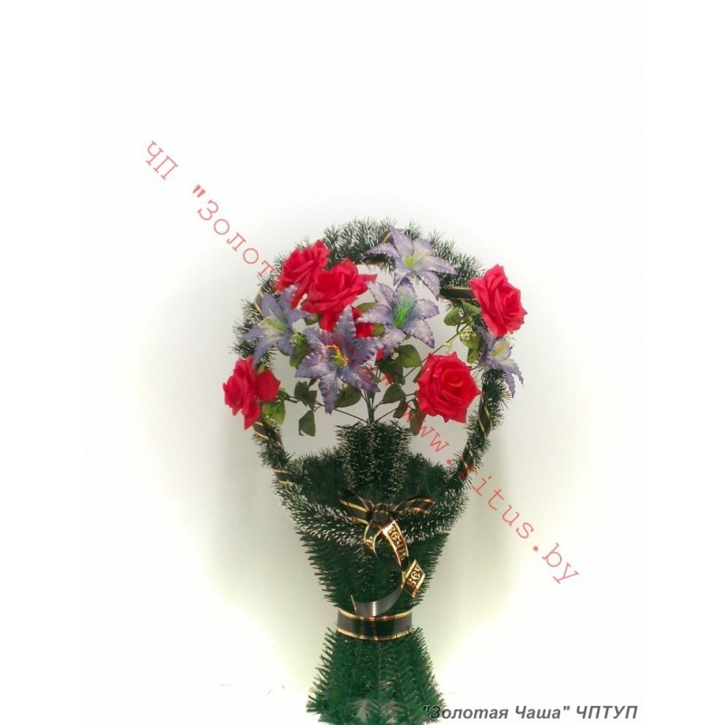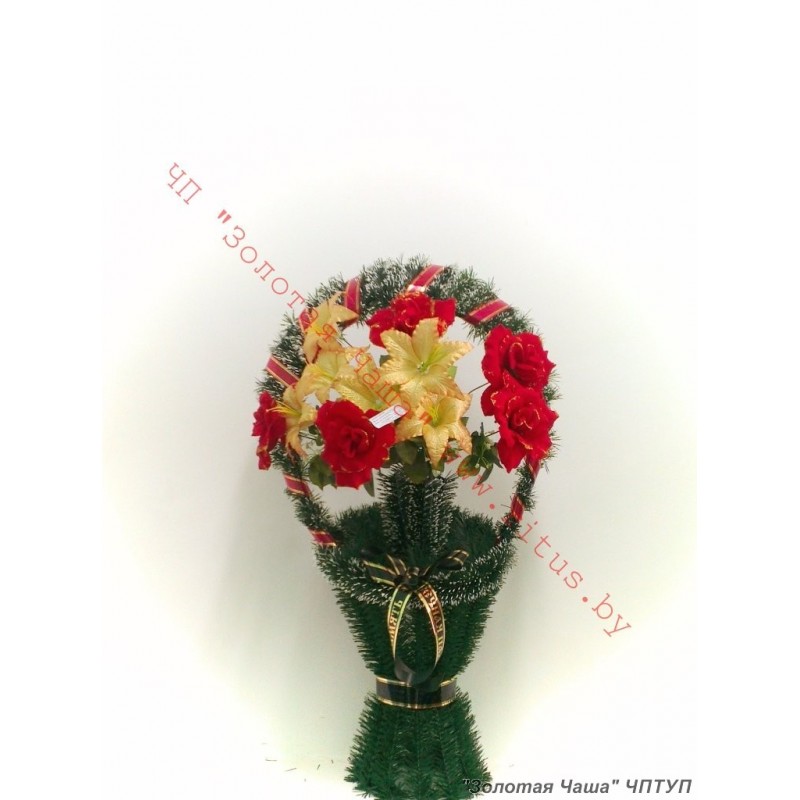 Корзина ритуальная из искуственных цветов.