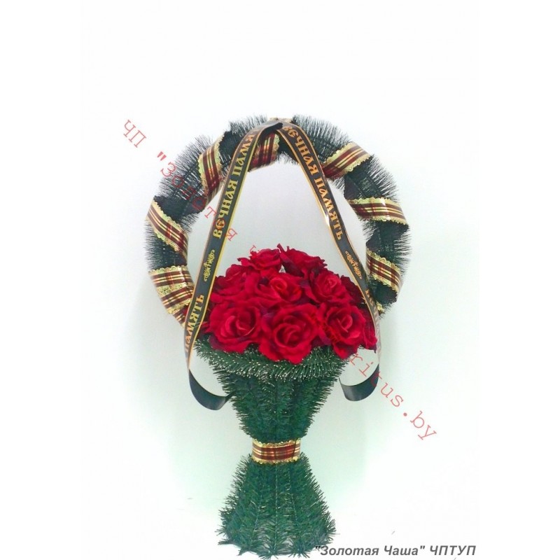 Корзина ритуальная из искусственных цветов. Изготавливается в различной цветовой гамме.