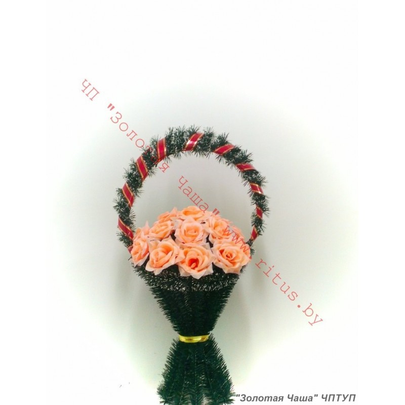 Корзина ритуальная из искусственных цветов. Изготавливается в различной цветовой гамме.